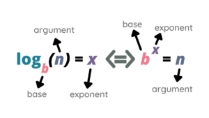 They answer the question: “What power do I raise the base to in order to get this number?”