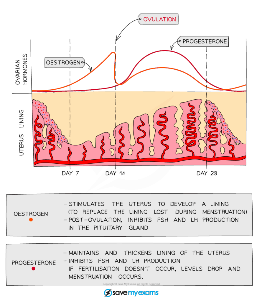 - Estrogen builds the endometrium; progesterone maintains it.