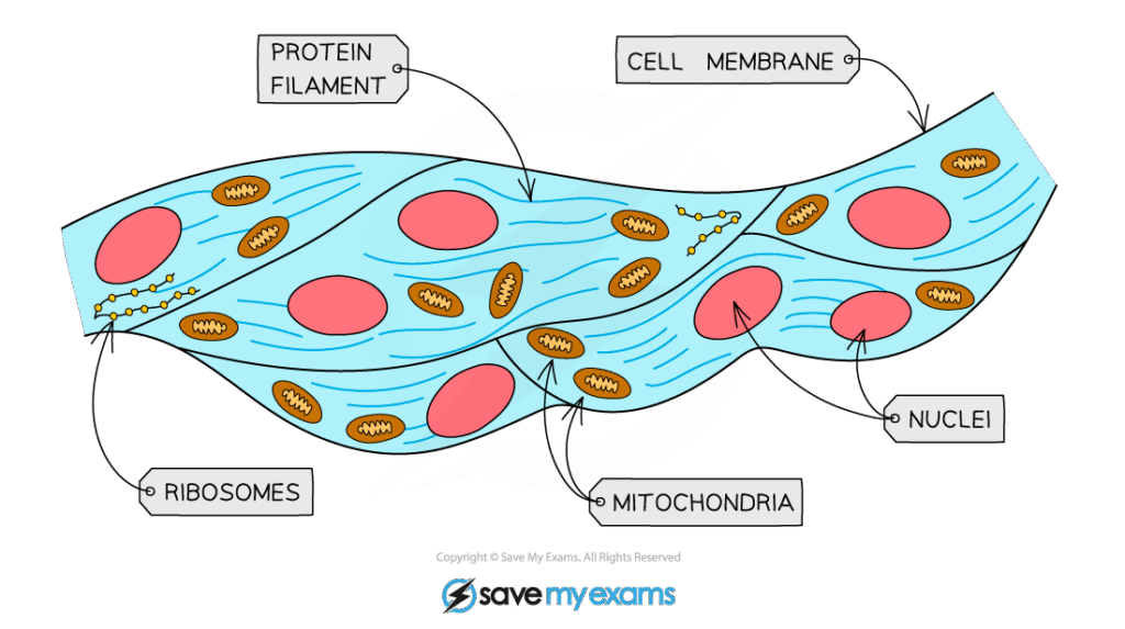 - Muscle fibres are long, multinucleated cells formed from fused myoblasts.