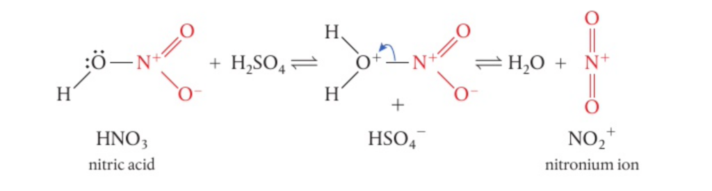 - Once the nitronium ion is generated, it undergoes the same reaction mechanism as seen above to form nitrobenzene